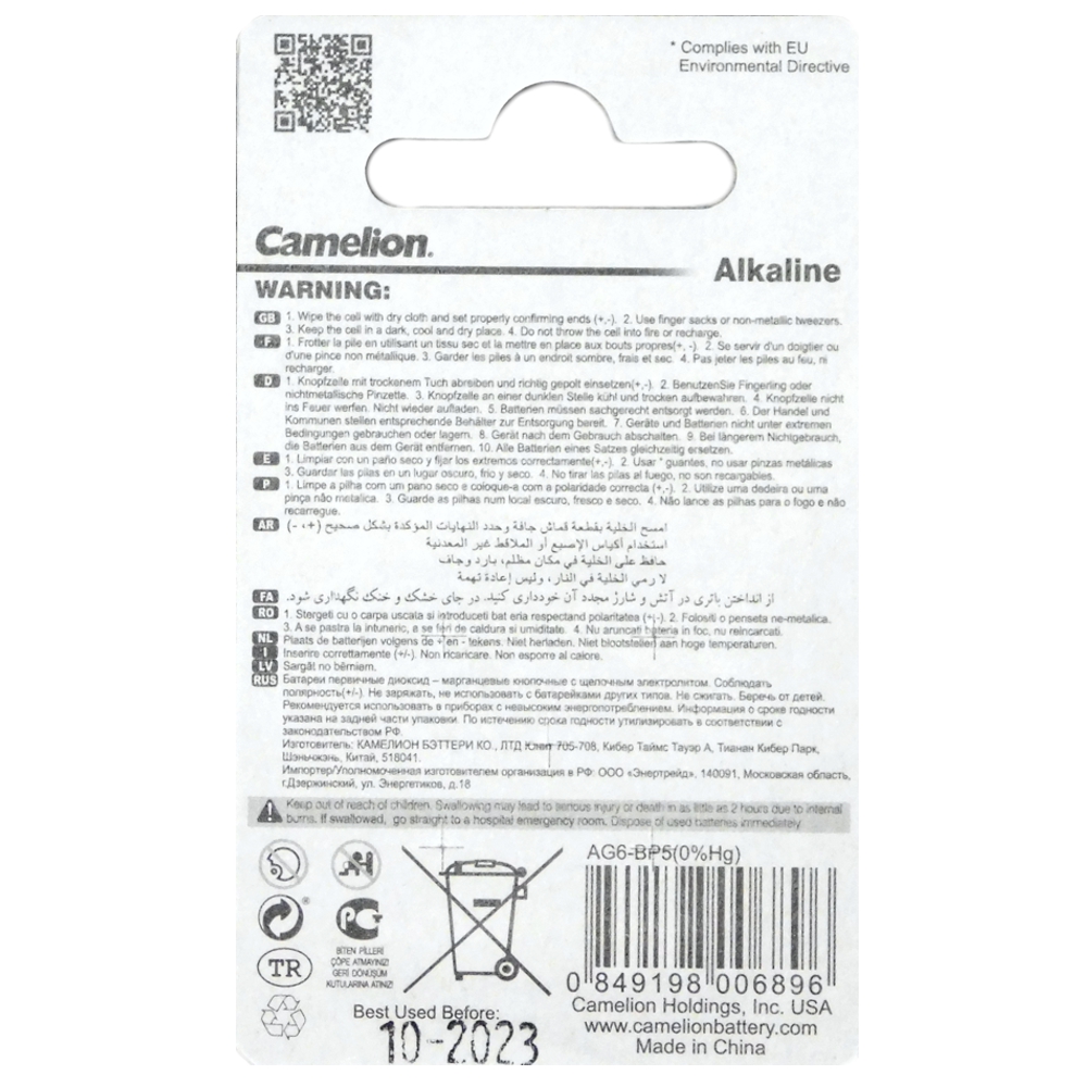 AG6 Alkaline Batteries 5pk