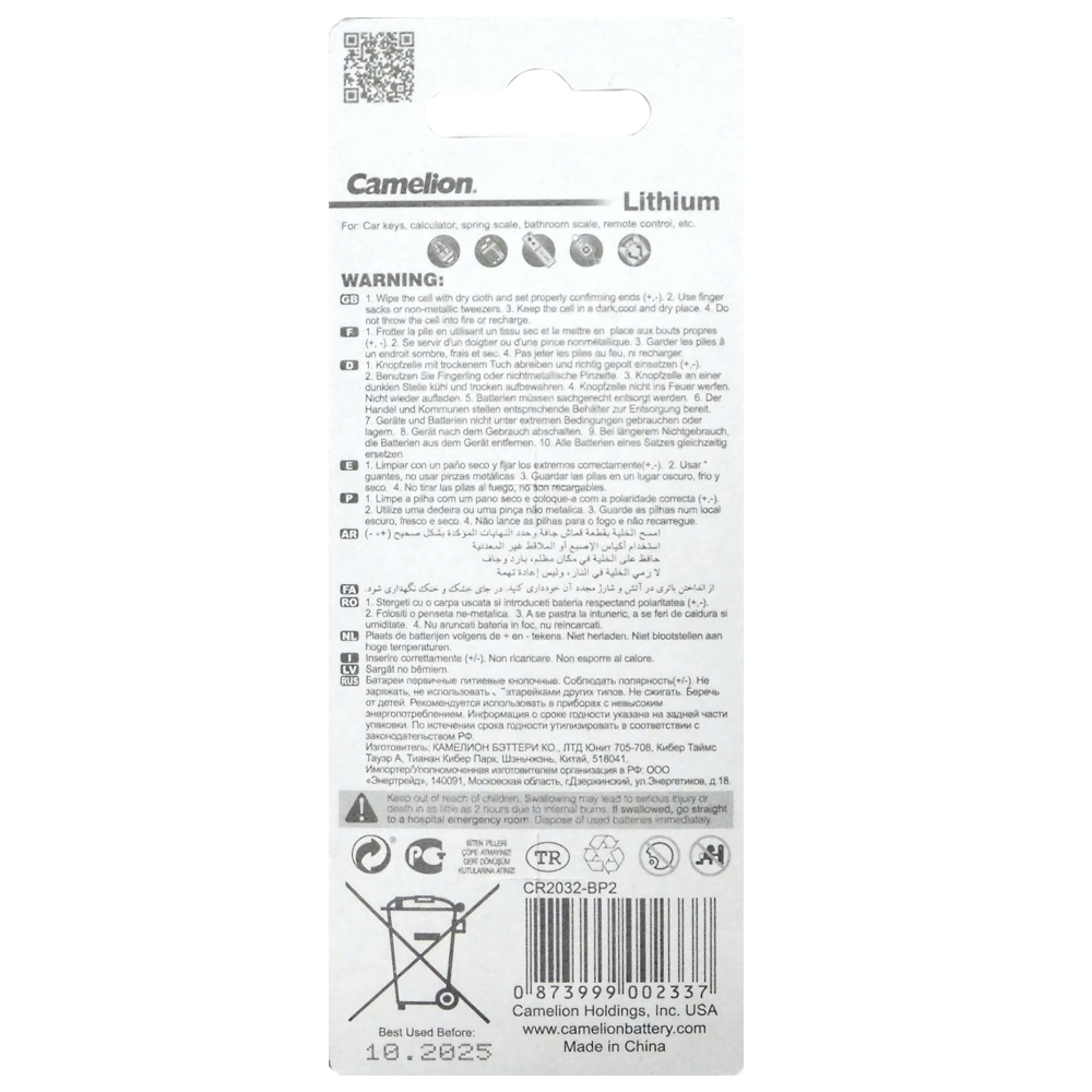 Camelion, 3 volt Lithium batteries, two pack.