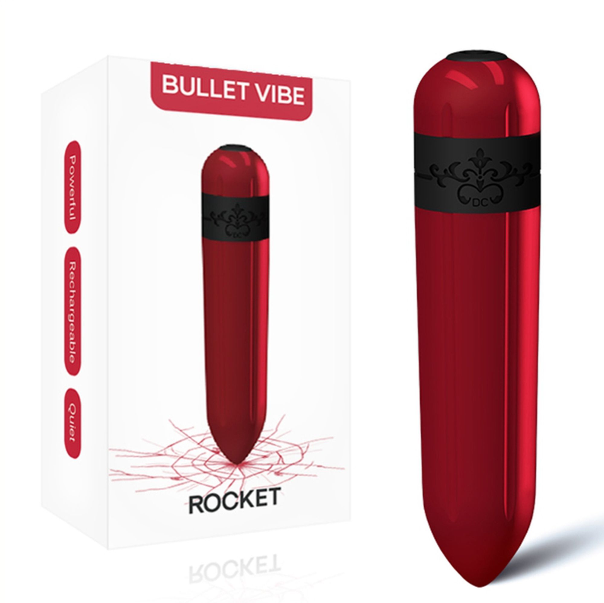 ROCKET, Bullet Vibe, Red is anatomically Perfect And Aesthetically Beautiful In Design. The Rocket Bullet is Designed to be Compatible with Any Toys and Accessories. Powerful Motor and a rechargeable battery. 9 powerful settings controlled by small hand held remote. Fast charging for hours of pleasure. Waterproof IPX7.